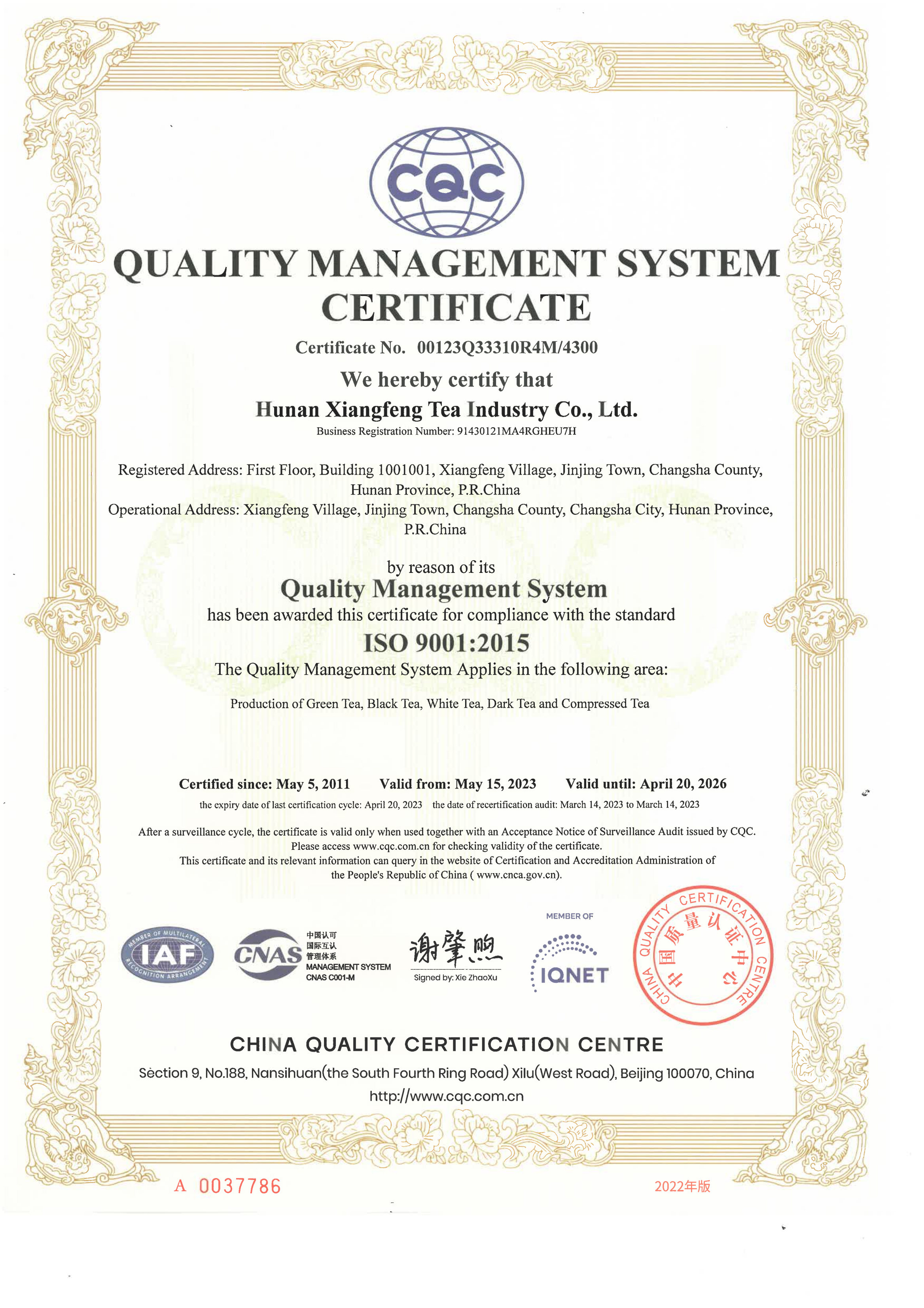 “长沙绿茶”商标授权